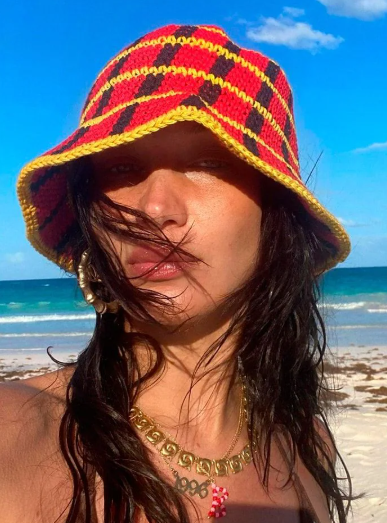 • Bella Hadid y otras estrellas del street style han apostado por accesorios de crochet como gorros y tops en sus vacaciones o salidas informales.