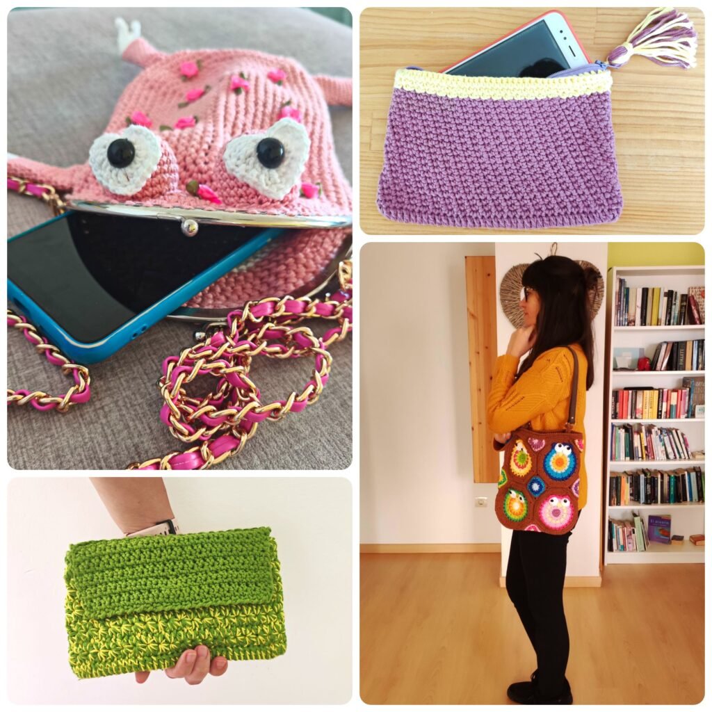 • Bolsos de crochet: Ideales como alternativa a bolsos industriales; destacan por su textura, colorido y el toque artesanal.