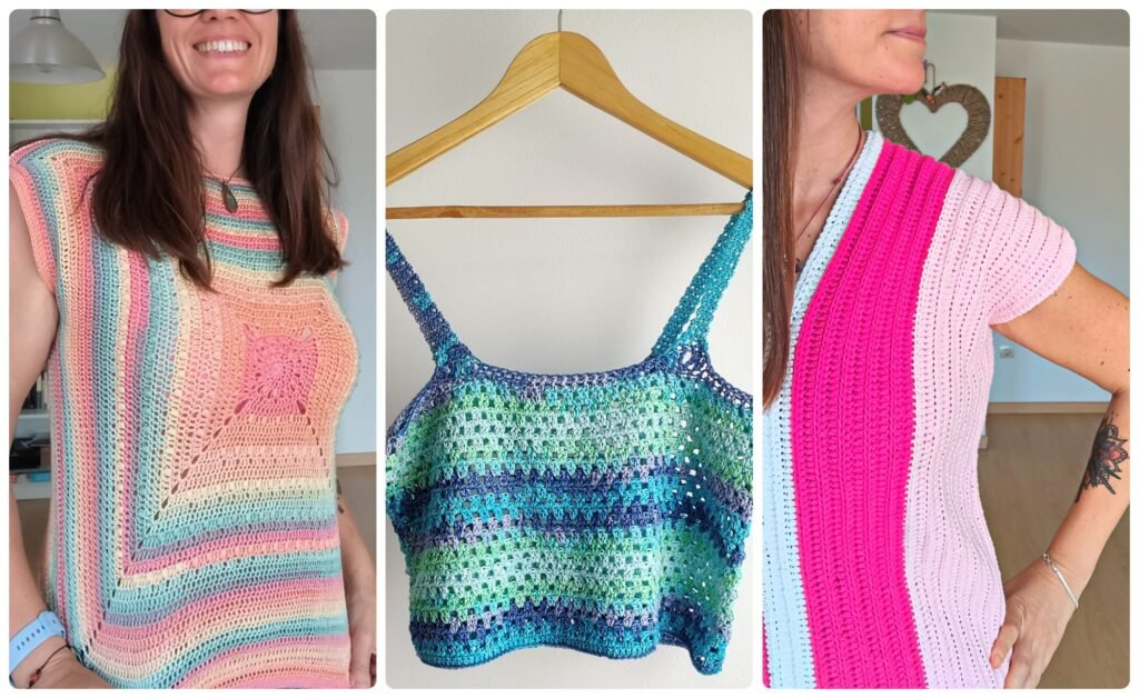 • Tops / camisetas crochet: Frescos, veraniegos, boho o chic; combinan bien con jeans, faldas o capas.