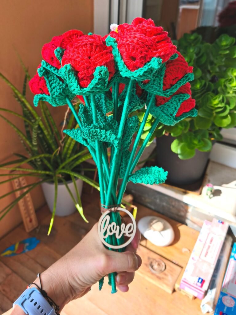 Durante el taller aprendimos paso a paso cómo tejer pétalos realistas, cómo darles forma y cómo montar la rosa completa. Lo más bonito fue ver cómo, aunque todas seguíamos la misma técnica, cada flor terminó siendo única, reflejando el estilo y personalidad de quien la tejió.