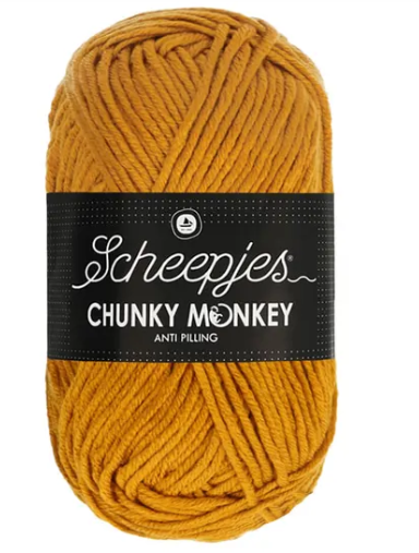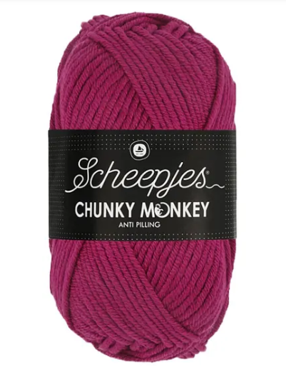 Scheepjes Chunky Monkey tiene una textura suave y agradable. Está fabricado con acrílico de alta calidad resistente al pilling (antibolas).